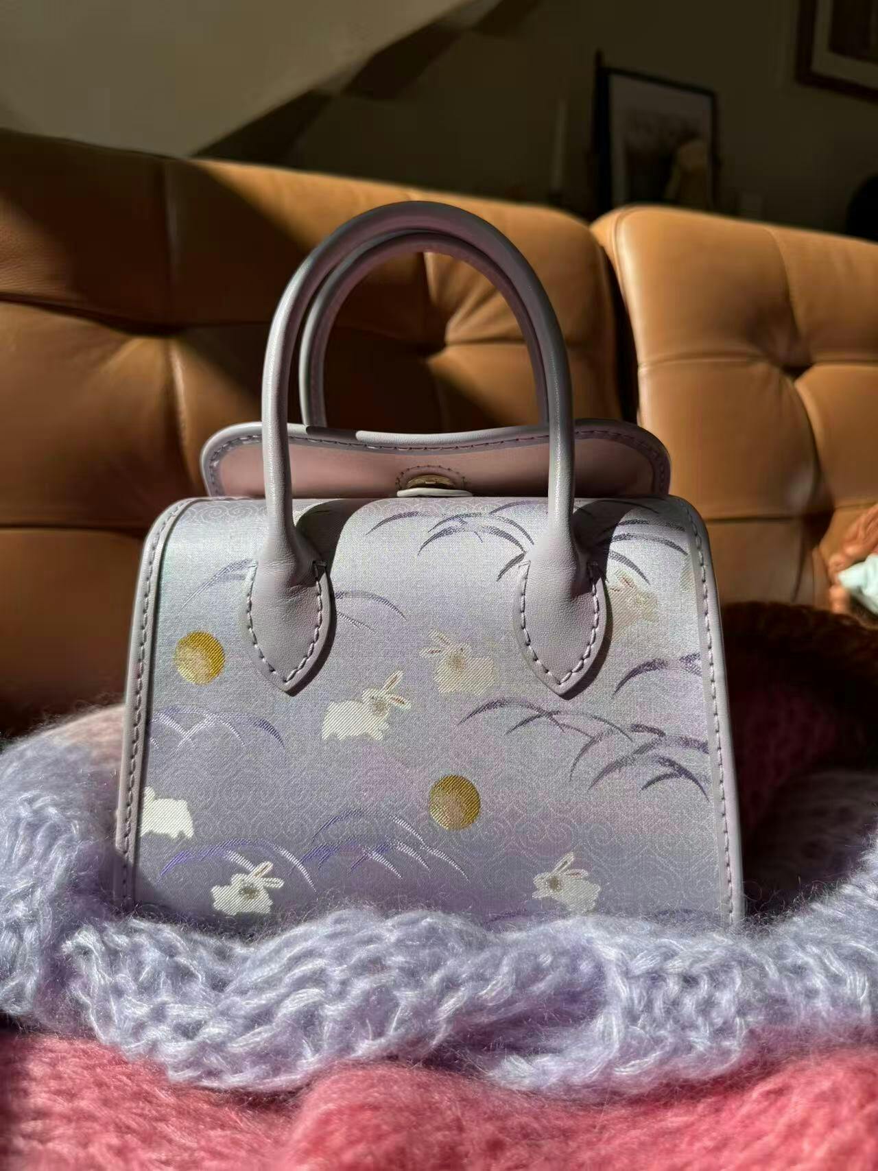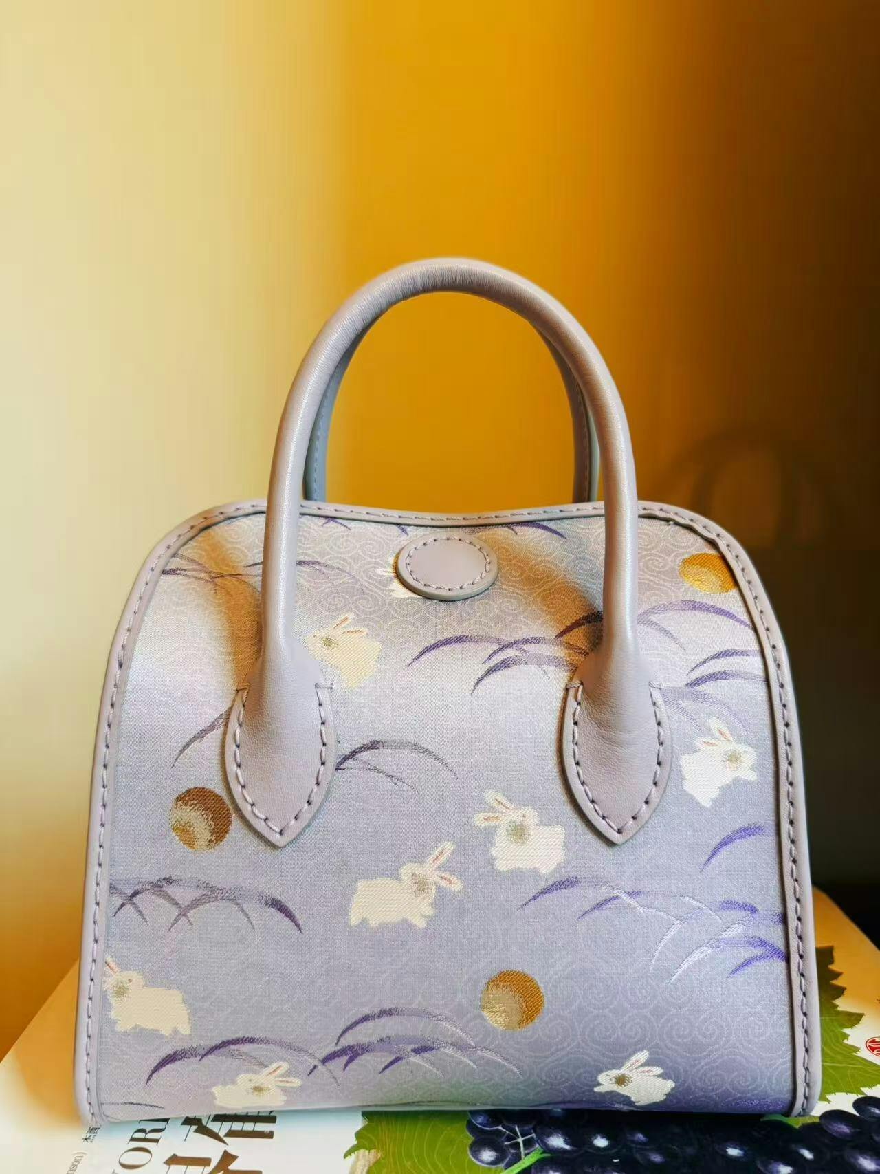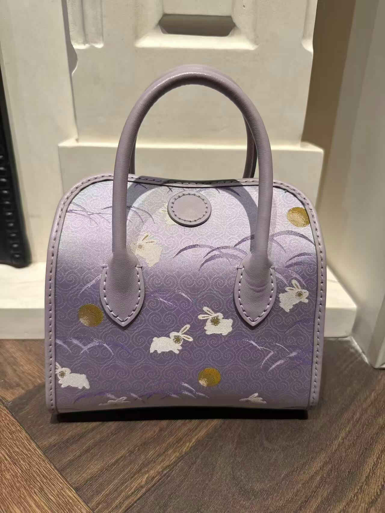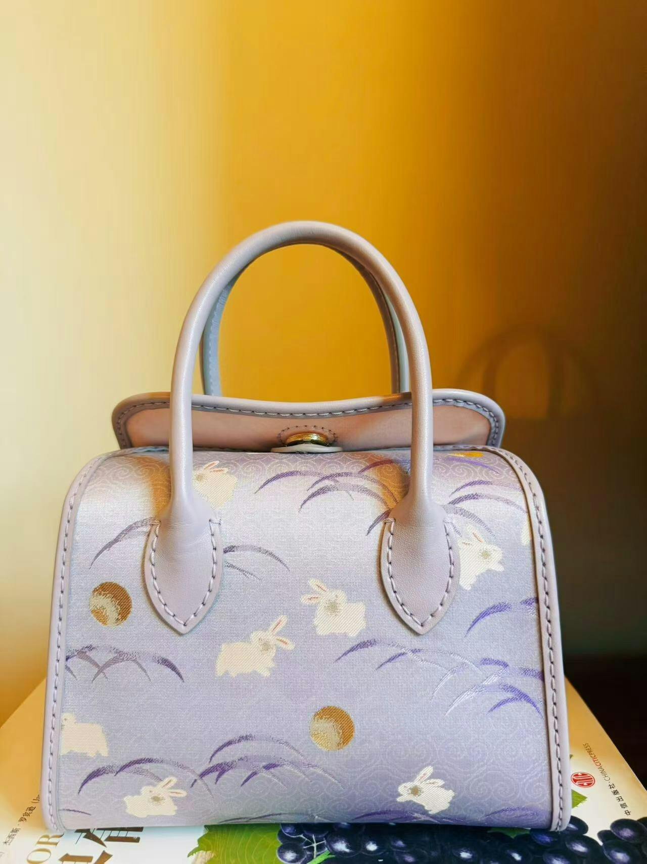 منسوجة من قماش سونغ بروكيد التاريخي، يصعد الأرنب الأرجواني (رمز النبل والثروة) نحو الشرق، مُبشّرًا بفجر أمل جديد. هذه الحقيبة، المُحاطة بجلد ناعم، تُجسّد أمنيةً سهلة المنال لمستقبل مشرق بالإنجاز والرخاء.