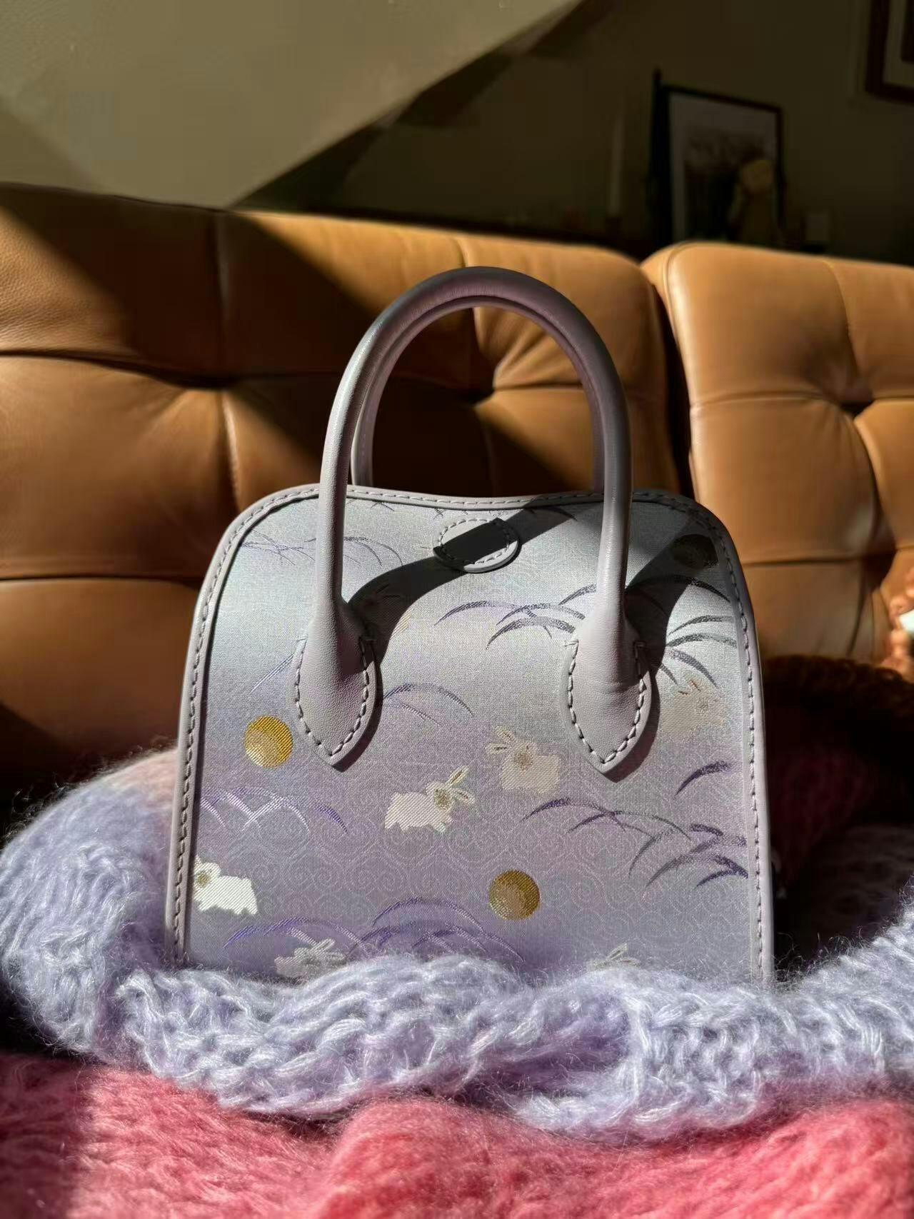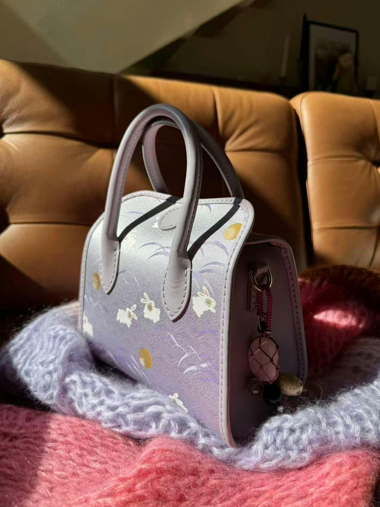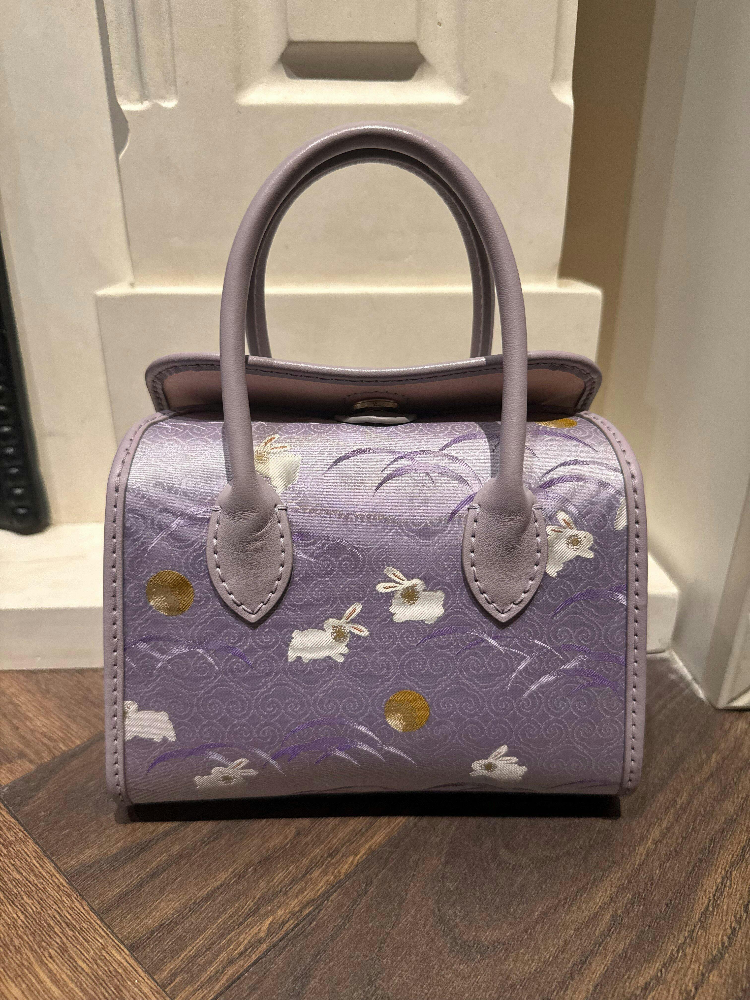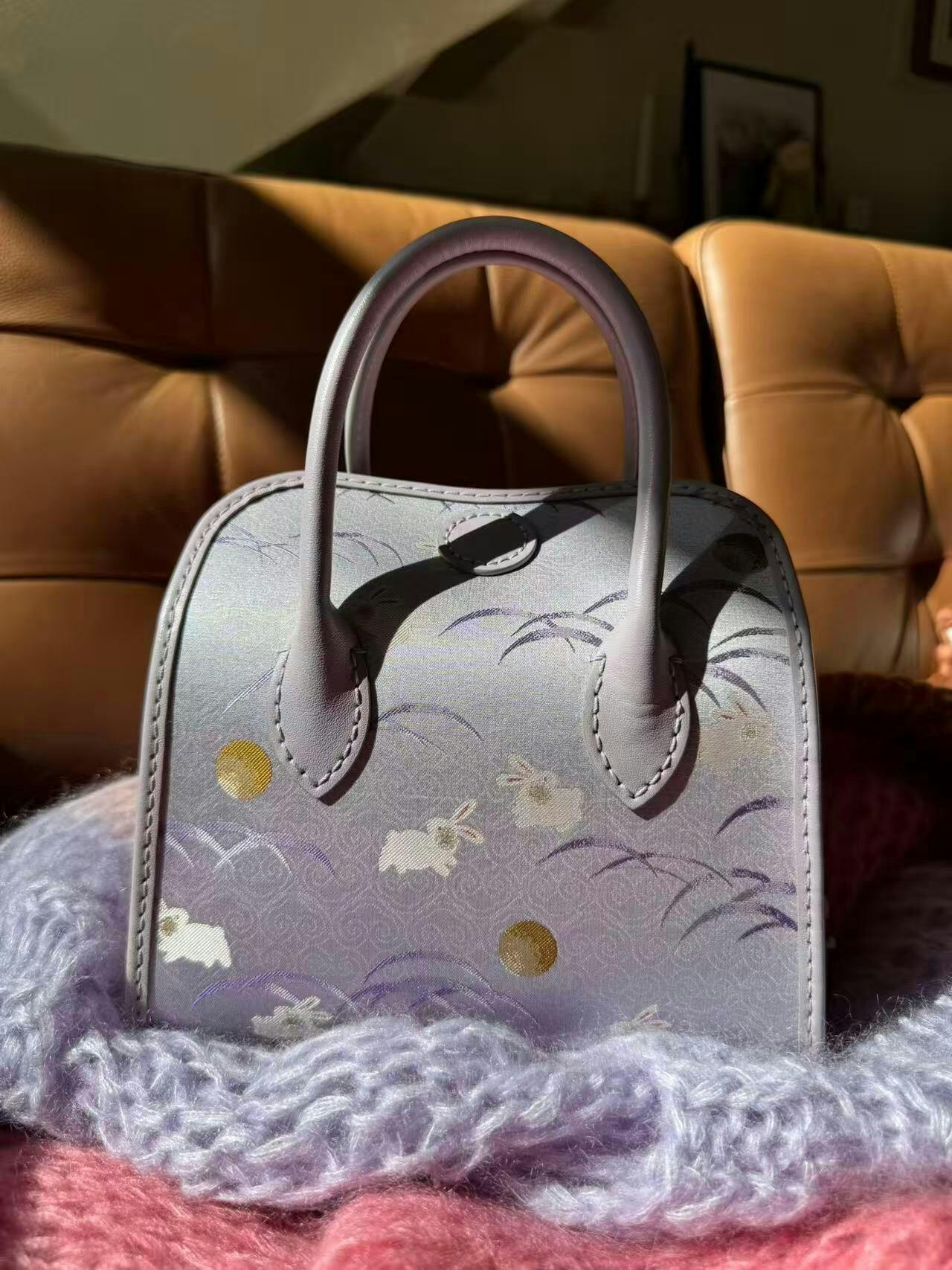 منسوجة من قماش سونغ بروكيد التاريخي، يصعد الأرنب الأرجواني (رمز النبل والثروة) نحو الشرق، مُبشّرًا بفجر أمل جديد. هذه الحقيبة، المُحاطة بجلد ناعم، تُجسّد أمنيةً سهلة المنال لمستقبل مشرق بالإنجاز والرخاء.