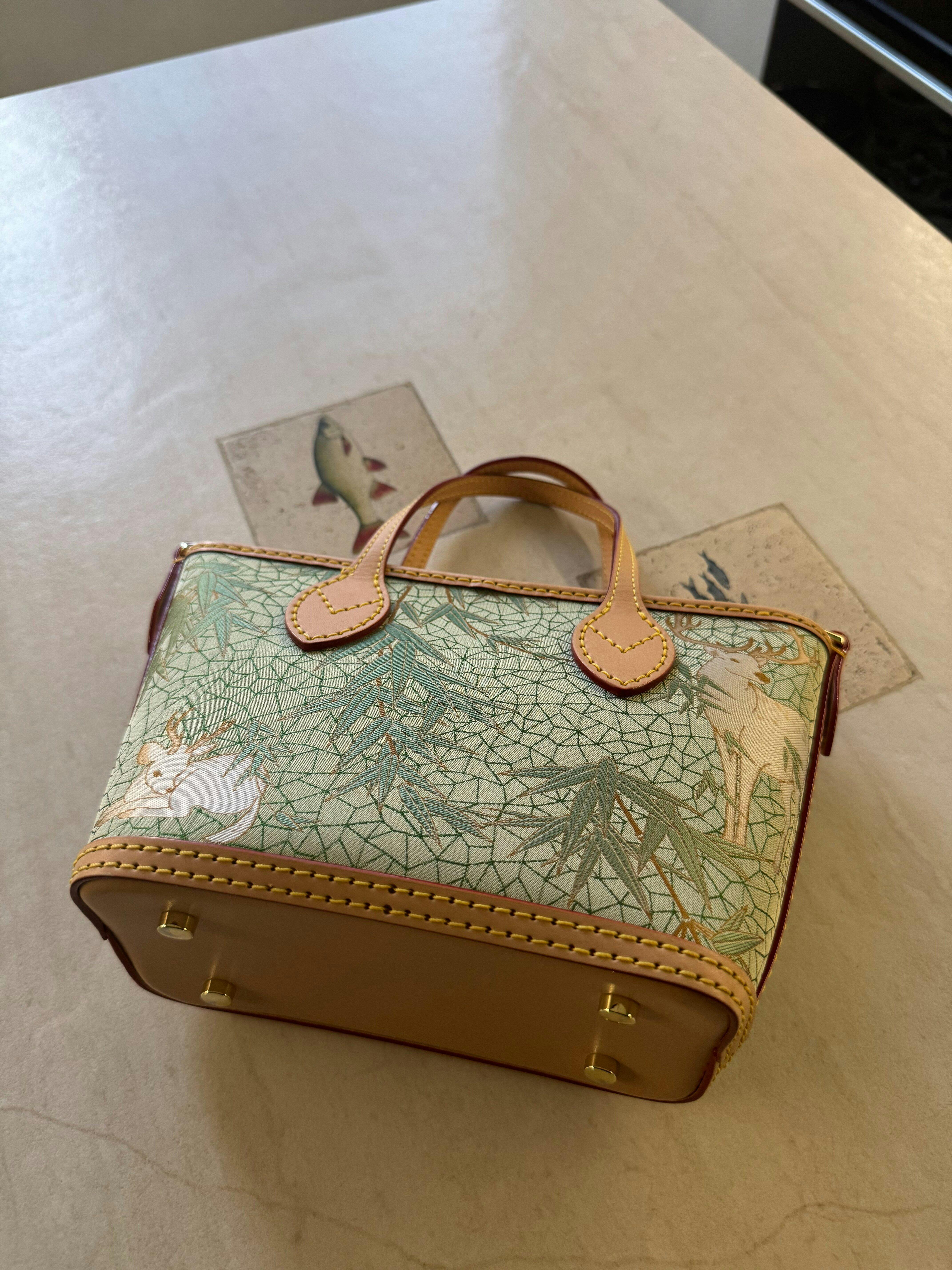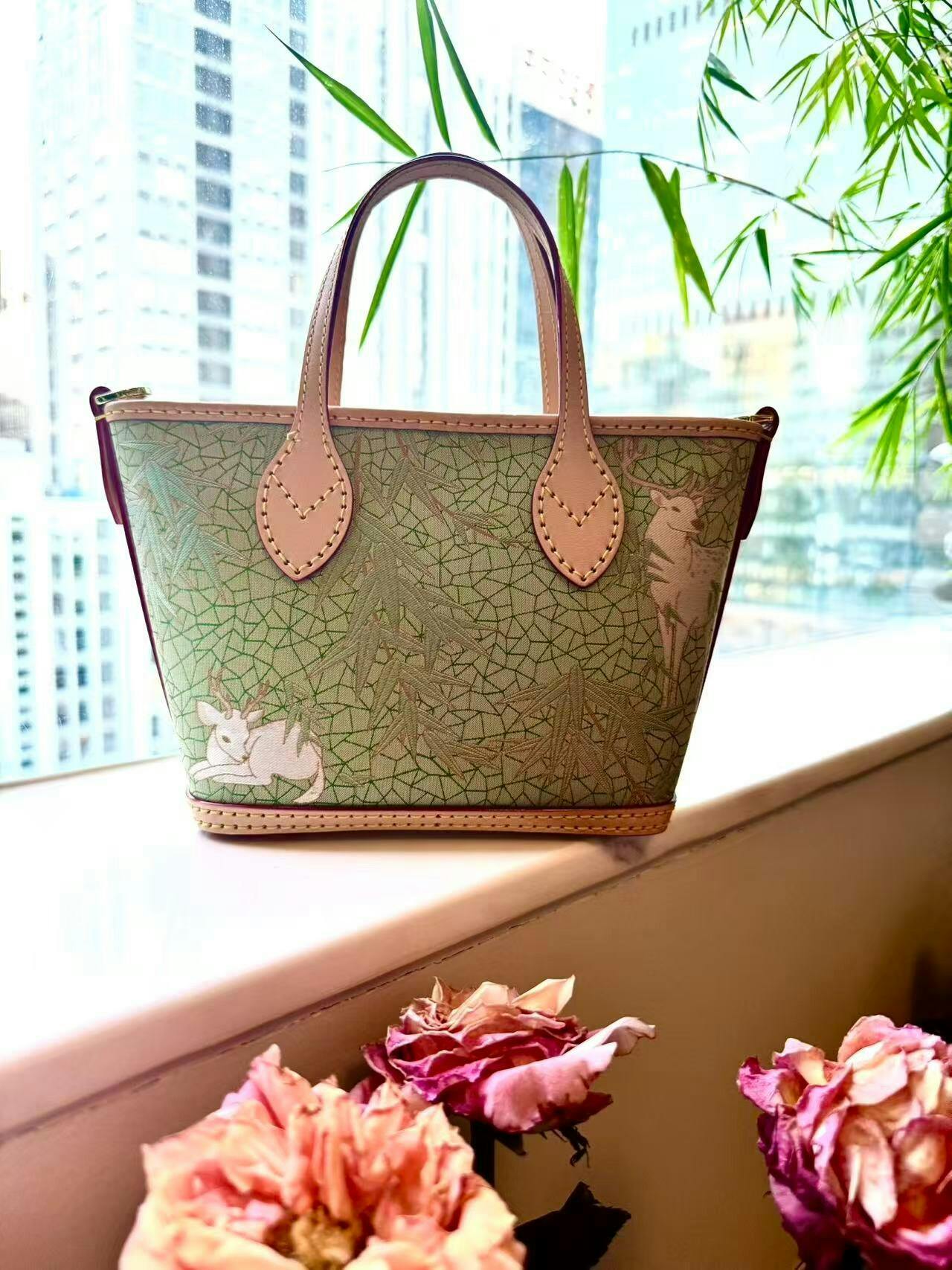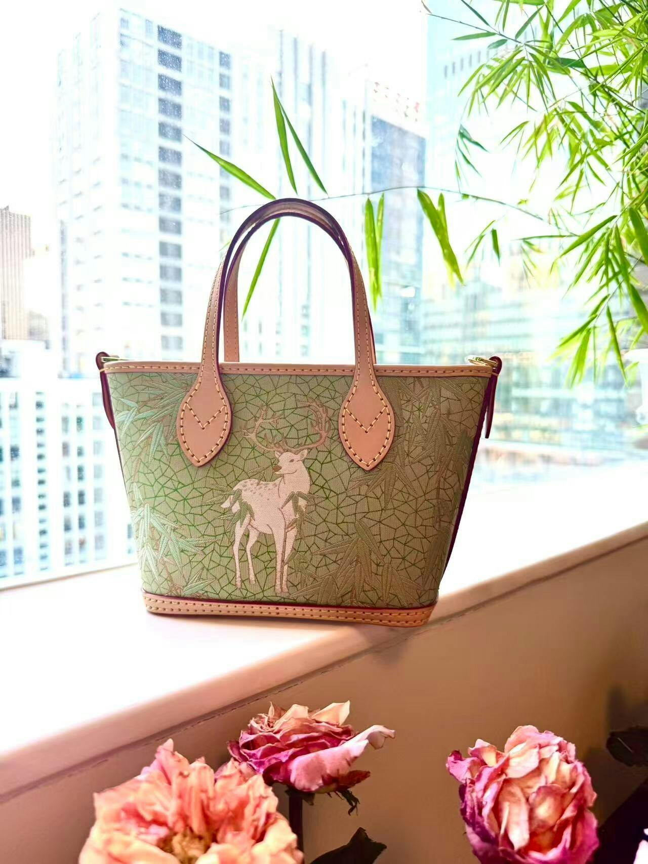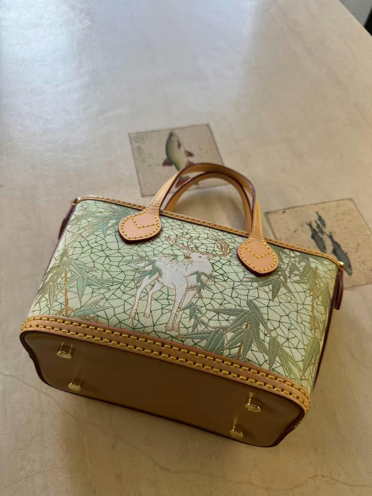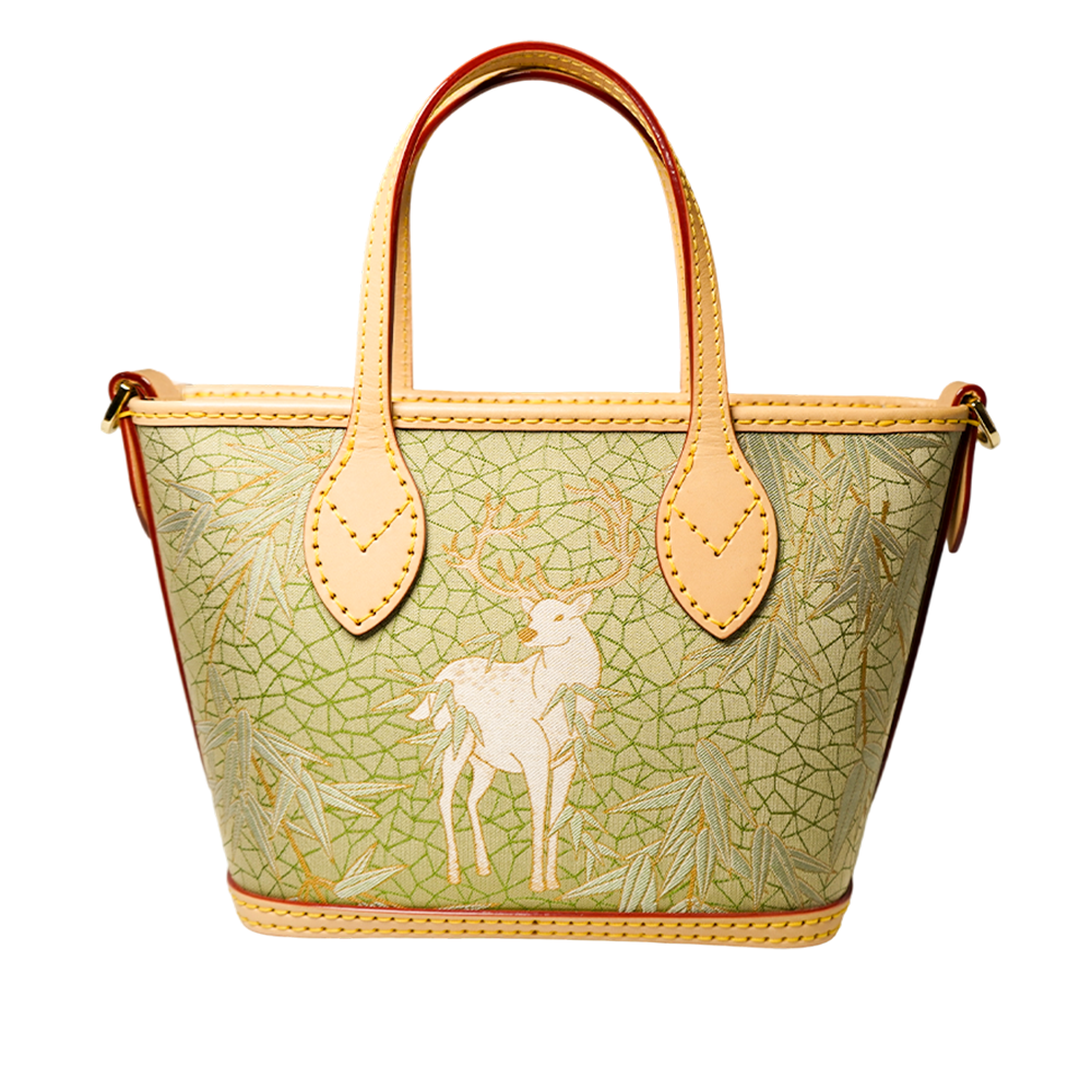 منسوجة من قماش سونغ بروكيد التاريخي، يتحد الغزال (رمز الحظ) والخيزران (رمز النزاهة). هذه الحقيبة، المُحاطة بجلد ناعم، تُجسّد صورةً عمليةً للنجاح المتوازن والقوة الفاضلة.