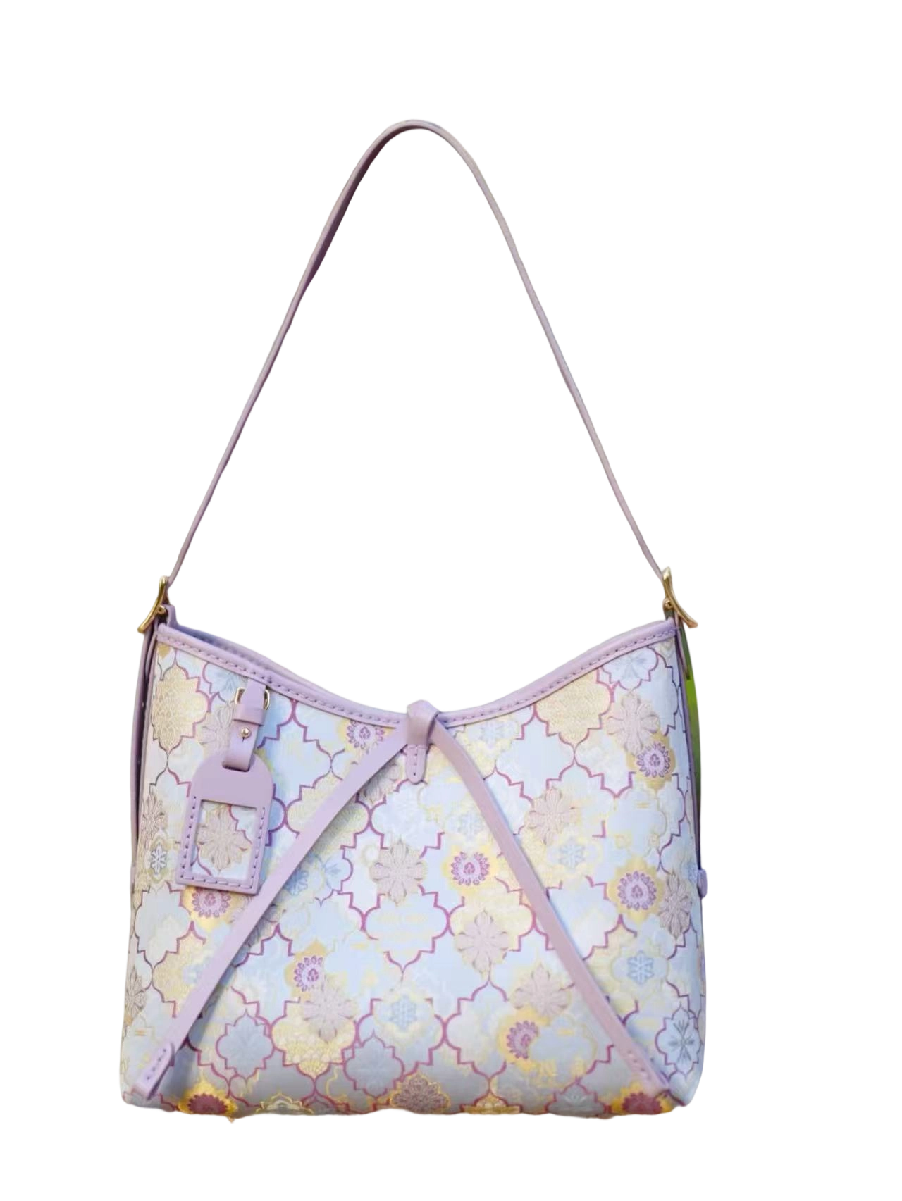 【Song Brocade Silk】Originating in China’s Song Dynasty, Song Brocade is one of the most revered forms of traditional silk weaving. Celebrated for its delicate texture, intricate patterns inspired by nature and classical art, and sophisticated multi-shuttle weaving technique, this luxurious fabric was once reserved exclusively for imperial wear. Today, Song Brocade is recognized as an intangible cultural heritage—a timeless craft that continues to inspire contemporary design. Each piece in our collection carries forward this legacy, blending centuries-old artistry with modern style to create bags that are not just accessories, but wearable art. Learn More.