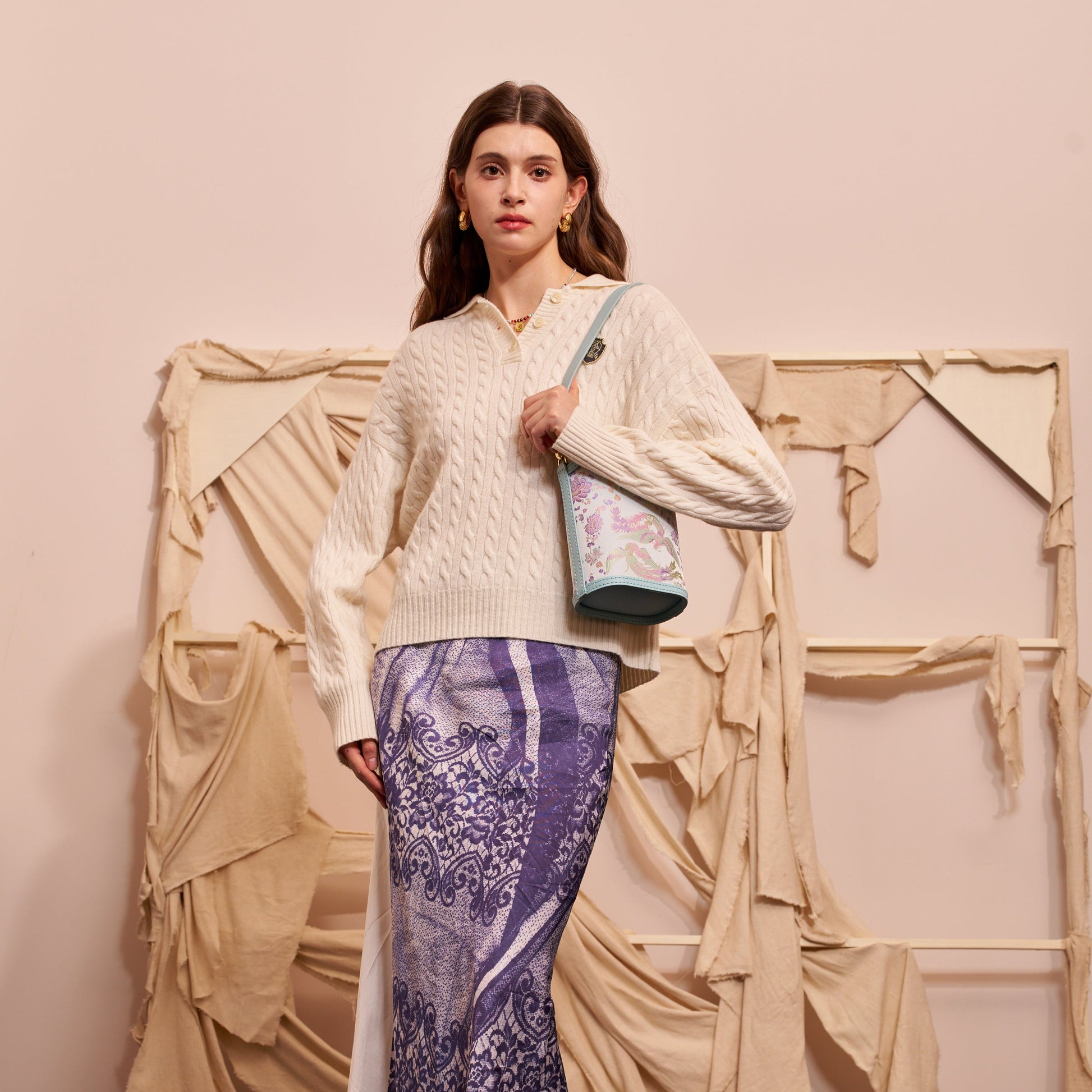 【Song Brocade Silk】Originating in China’s Song Dynasty, Song Brocade is one of the most revered forms of traditional silk weaving. Celebrated for its delicate texture, intricate patterns inspired by nature and classical art, and sophisticated multi-shuttle weaving technique, this luxurious fabric was once reserved exclusively for imperial wear. Today, Song Brocade is recognized as an intangible cultural heritage—a timeless craft that continues to inspire contemporary design. Each piece in our collection carries forward this legacy, blending centuries-old artistry with modern style to create bags that are not just accessories, but wearable art. Learn More.