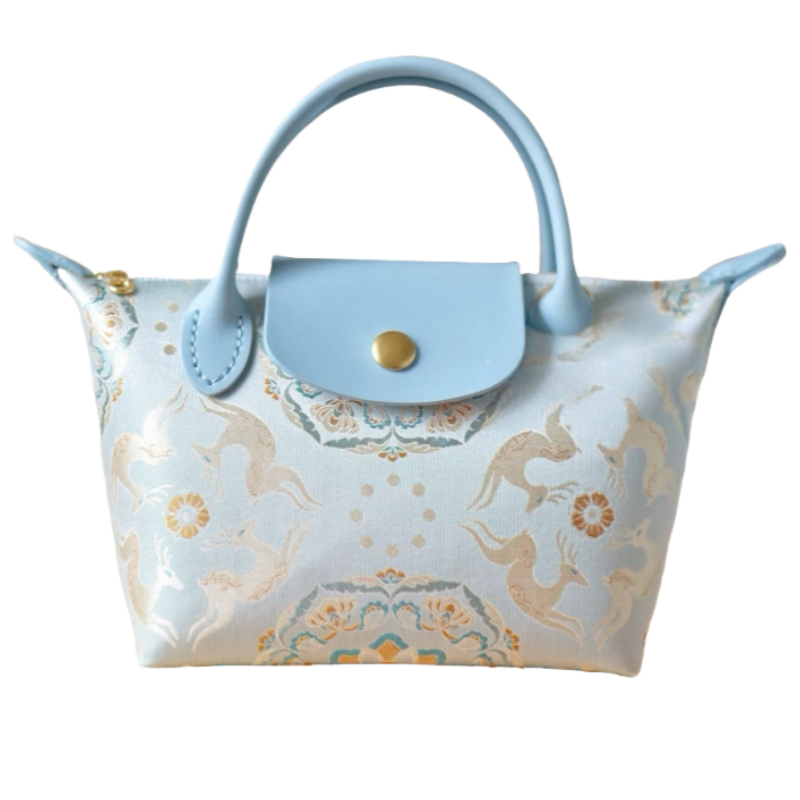 【Song Brocade Silk】Originating in China’s Song Dynasty, Song Brocade is one of the most revered forms of traditional silk weaving. Celebrated for its delicate texture, intricate patterns inspired by nature and classical art, and sophisticated multi-shuttle weaving technique, this luxurious fabric was once reserved exclusively for imperial wear. Today, Song Brocade is recognized as an intangible cultural heritage—a timeless craft that continues to inspire contemporary design. Each piece in our collection carries forward this legacy, blending centuries-old artistry with modern style to create bags that are not just accessories, but wearable art. Learn More.